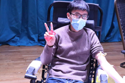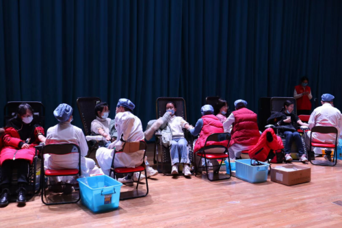 The blood donorsfrom the school all arrived at the designated place ahead of time, and the hunger caused by fasting before blood donation did not affect their enthusiasm for donating blood. The volunteers were happy and relaxed during the preliminary blood test, and they felt satisfied and proud of their contribution to the society. Moreover, the conversation among the volunteers alsoeasedtheir tension.