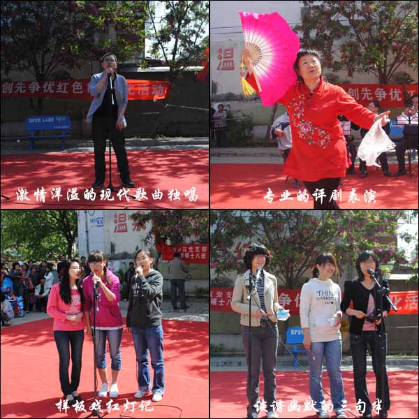 法硕学院8班党支部针对北齐家镇温泉B区的实际需要,重点抓住温泉B区的文化薄弱环节,就现代歌曲、红色歌曲、小品、器乐、诗歌朗诵等方面自编自演,为社区居民献上了一台丰富多彩的文艺演出。青春洋溢的现代歌曲、感人震撼的红色歌曲、诙谐幽默的小品表演、技术精湛的乐器演奏、高亢激昂的诗歌朗诵让此次文艺演出高潮迭起,为北齐家镇温泉B区新农村建设的文化生活又添上了浓重的一笔。社区居民们也兴致勃勃得加入了表演队伍,他们活力四射的西班牙斗牛舞、优美动听的乐器表演、专业的评剧演唱让我们体会到“夕阳无限好”的美好与温馨。演出期间,掌声不断,全体演员观众共同沉浸在欢歌笑语声中。